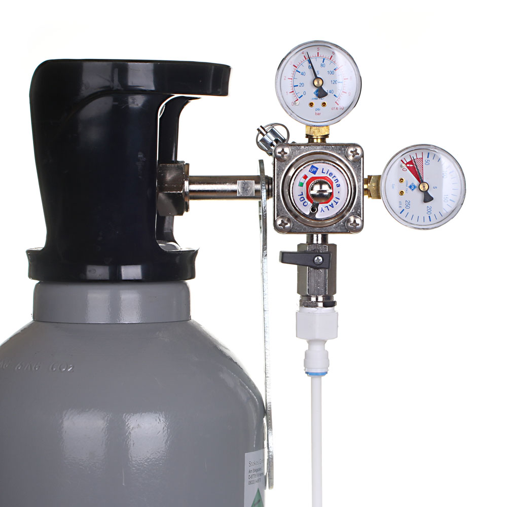 Ein CO2-Druckminderer wird benötigt, um den extrem hohen Druck in einer CO2-Gasflasche auf einen gewissen Arbeitsdruck zu reduzieren, sodass man das Lebensmittel-CO2 in leitungsgebundene Wasserspender mit Sodafunktion einführen kann.